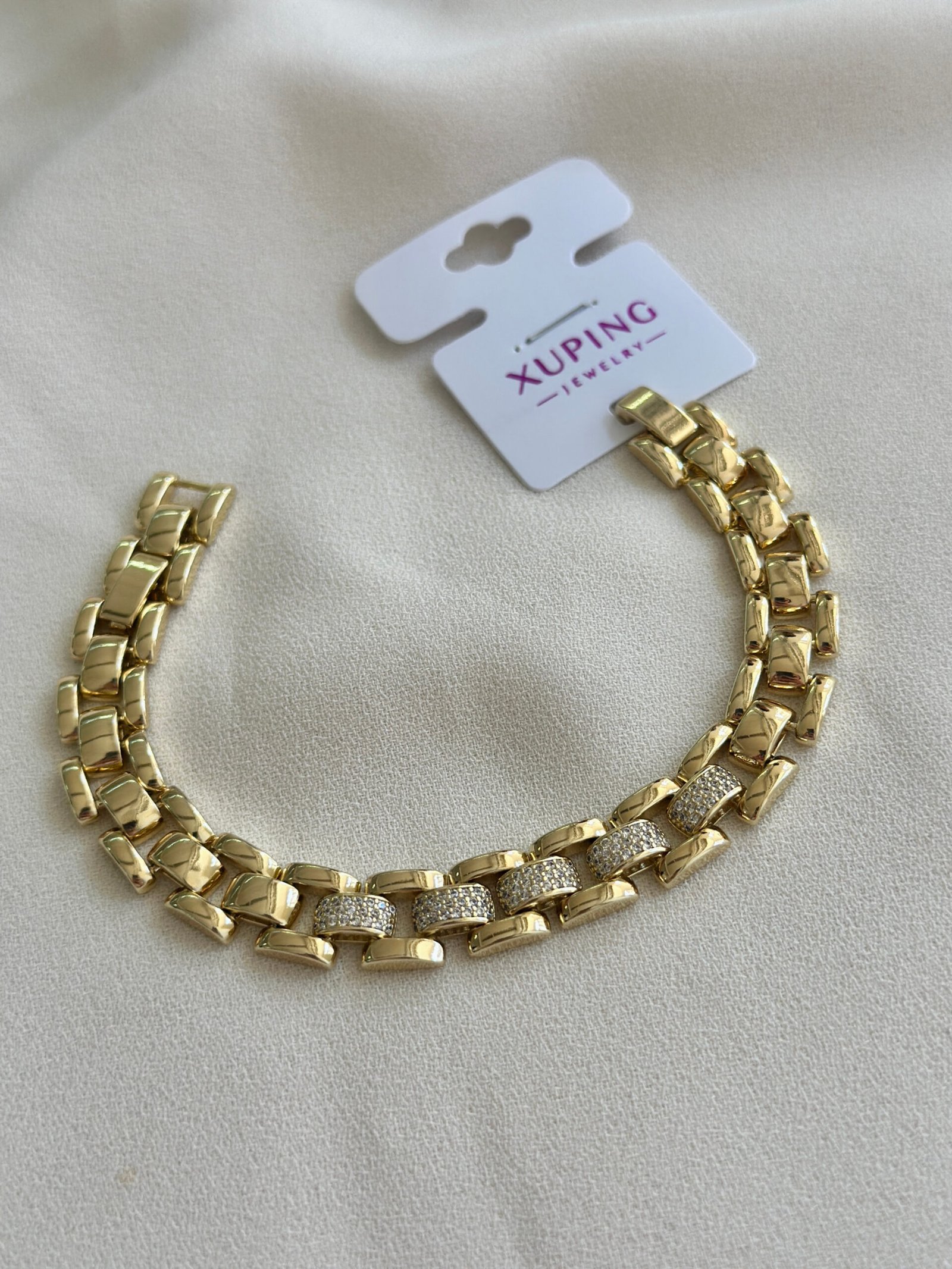 Kordon model taşlı Xuping bileklik, klasik kordon zincir tasarımını parlak taş detaylarıyla tamamlar. Dayanıklı Xuping kaplaması sayesinde uzun süre ışıltısını korur ve bileğinizde şık bir görünüm sunar. Hem günlük hem de özel kombinler için ideal bir aksesuardır.