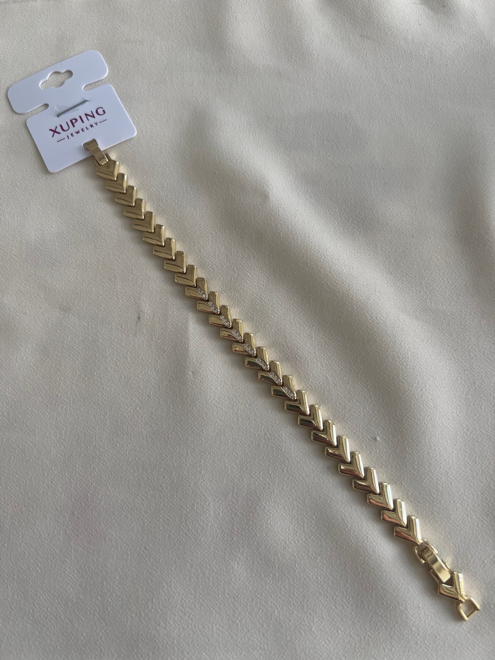 V model Xuping bileklik, modern V formu ve parlak kaplamasıyla bileğinizde şık bir detay oluşturur. Minimalist tasarımı sayesinde her stile kolayca uyum sağlar. Dayanıklı yapısıyla uzun süre ışıltısını koruyan zarif bir aksesuardır.