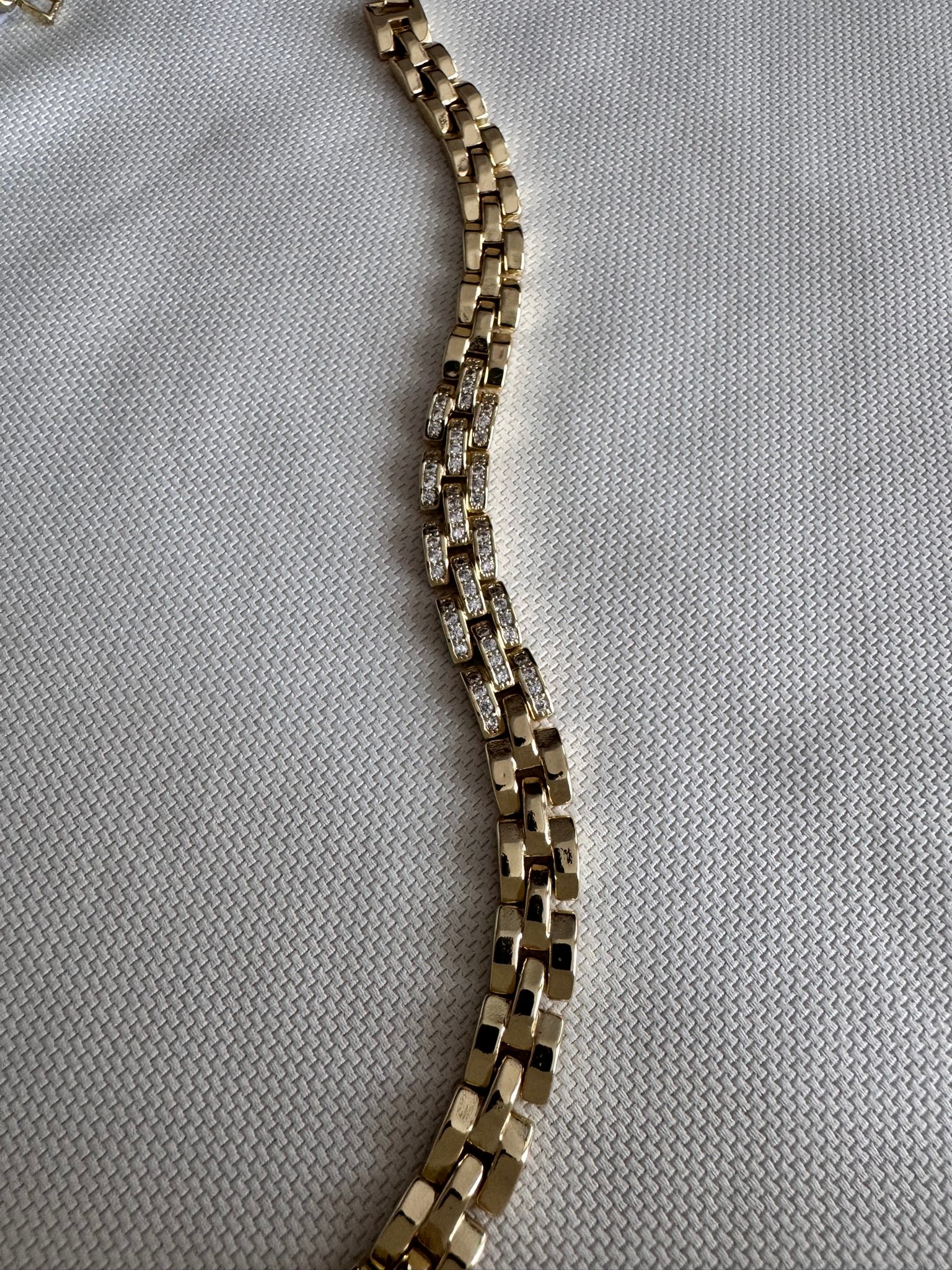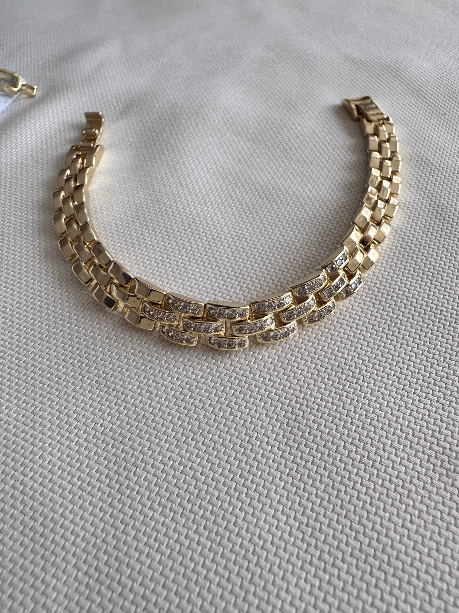 Kordon model taş detay bileklik, klasik kordon tasarımını zarif taş süslemeleriyle birleştirir. Işıltılı taşlar sayesinde bileğinizde şık ve modern bir görünüm oluşturur. Hem günlük hem de özel kombinlerde rahatlıkla kullanılabilir, dayanıklı yapısıyla uzun süre parlaklığını korur.