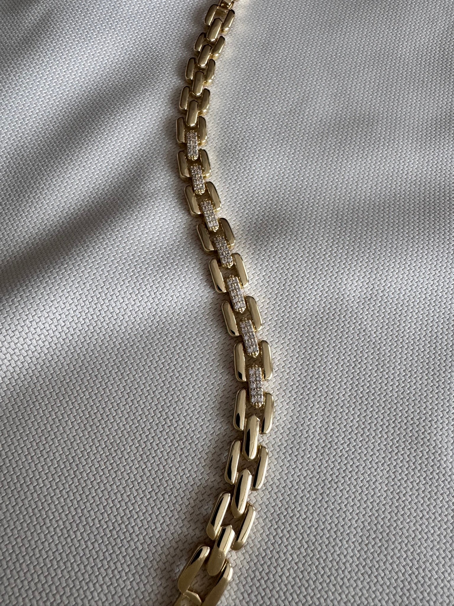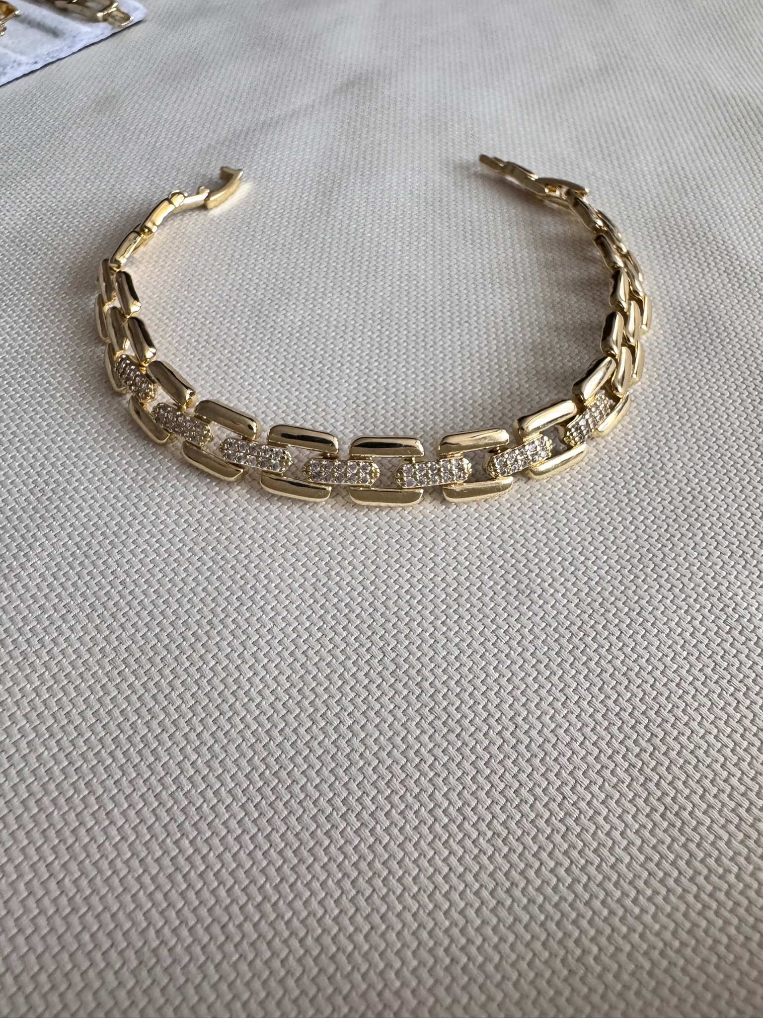 Kare geçişli geniş taşlı Xuping bileklik, dikkat çekici kare formlu geçişler ve büyük taş detaylarıyla tasarlanmıştır. Geniş yapısı sayesinde bilekte gösterişli bir görünüm sunar ve özel davetler için ideal bir aksesuardır. Xuping’in kaliteli kaplaması ve parlak taşları ile hem şıklık hem dayanıklılık sağlar.