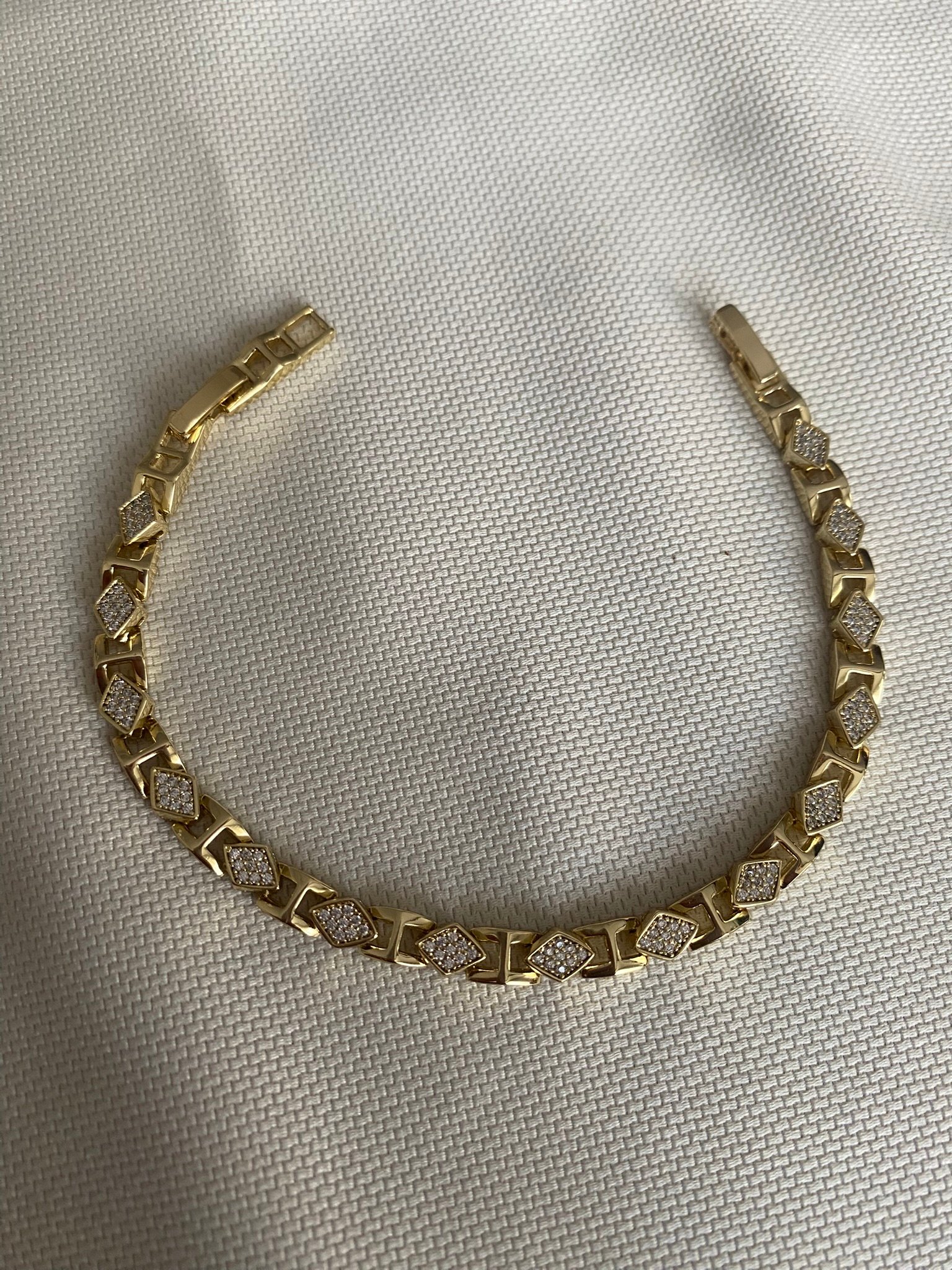 Baklava desenli ve taş detaylı bu Xuping bileklik, özgün tasarımıyla zarif bir şıklık sunar. Parlak taşlar ve baklava motifleri, bilekliğe dikkat çekici bir görünüm kazandırır. Hem günlük hem de özel günlerde stilinizi tamamlayan şık bir aksesuardır.