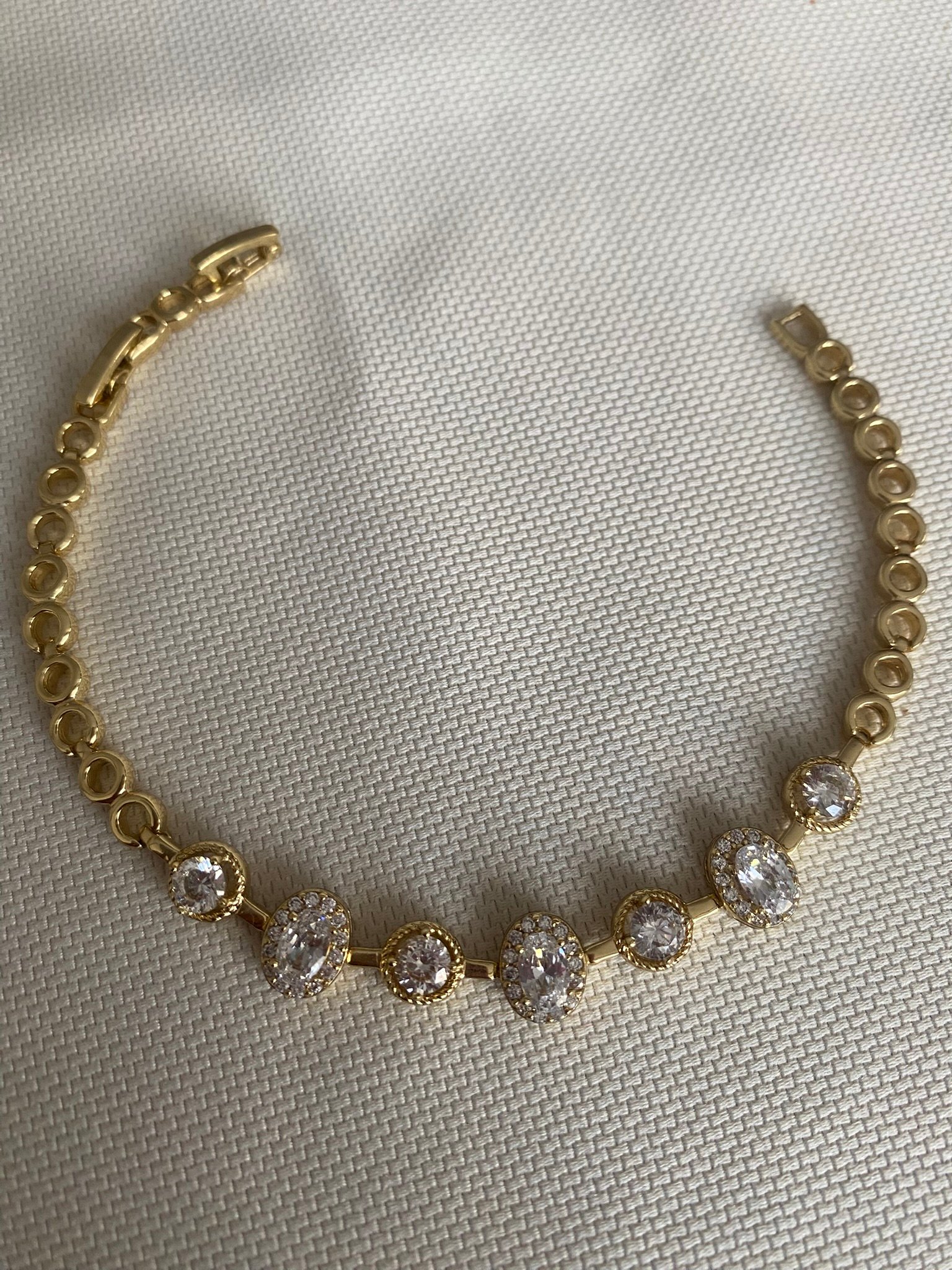 İnce tasarımı ve ortasındaki oval taş detayıyla bu Xuping bileklik, zarif ve modern bir şıklık sunar. Parlak kaplaması ve ışıltılı taşı sayesinde hem günlük hem de özel günlerde stilinizi tamamlar. Her kombine kolayca uyum sağlayan şık bir aksesuardı