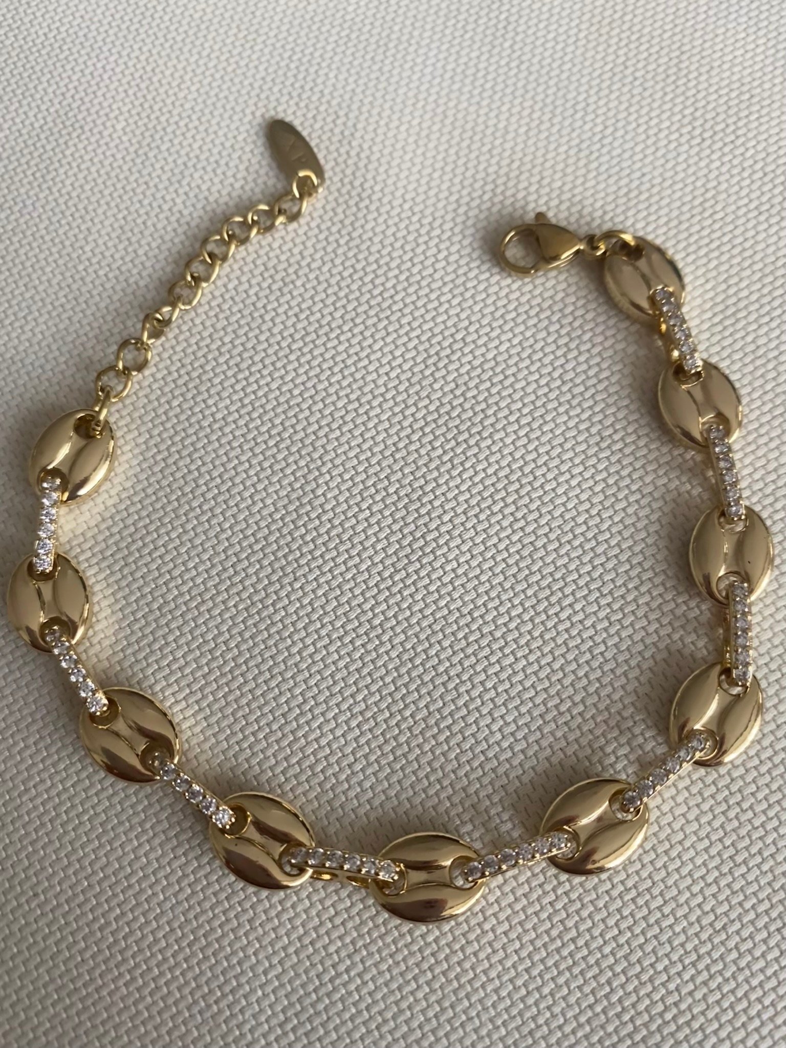 Taşlı düğme detaylarıyla tasarlanan bu bileklik, zarif ve modern bir şıklık sunar. Parlak taşlar ve özgün düğme formu sayesinde hem günlük hem de özel günlerde stilinizi tamamlar. Her kombine kolayca uyum sağlayan şık bir aksesuardır.