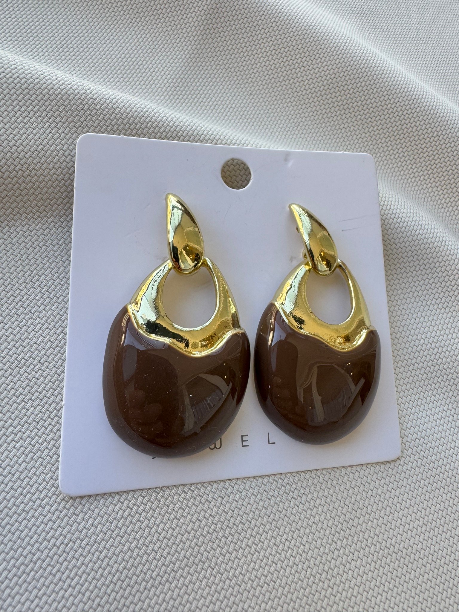 Doğal taş görünümlü kahve sallantılı küpe