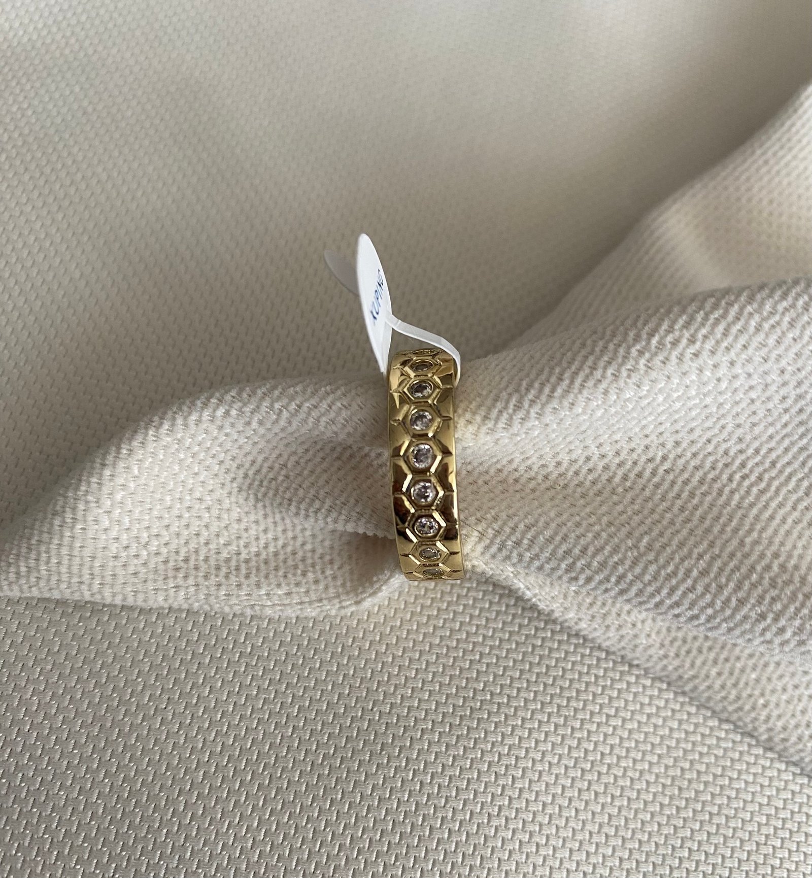 Petek desenli ve taş detaylı Xuping yüzük, modern ve özgün tasarımıyla dikkat çeker. Işıltılı taşlar ve petek motifleri, yüzüğe zarif bir şıklık katar. Hem günlük kullanımda hem de özel anlarda stilinizi tamamlar.